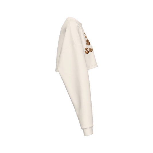 Women's Cropped Crewneck Sweatshirt-Techno Scuba Knit - Sand Dune