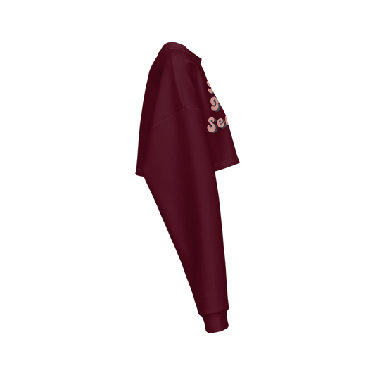 Women's Cropped Crewneck Sweatshirt-Techno Scuba Knit - Burgundy