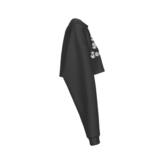 Women's Cropped Crewneck Sweatshirt-Techno Scuba Knit - Charcoal
